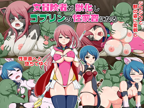 女冒険者の二人がゴブリンに捕まり、獣化させられ性家畜になるCG集です。